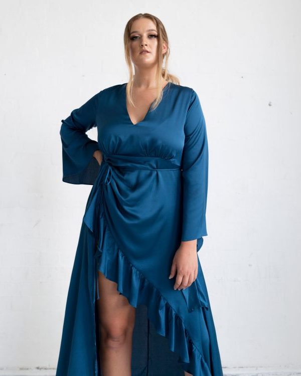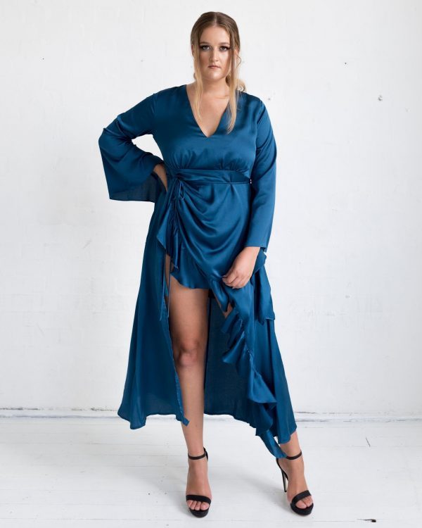Jasmine Dress (with front ruffle) - Blue Peacock Colour - FINAL SALE