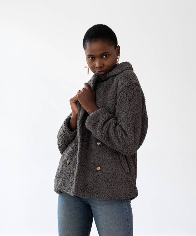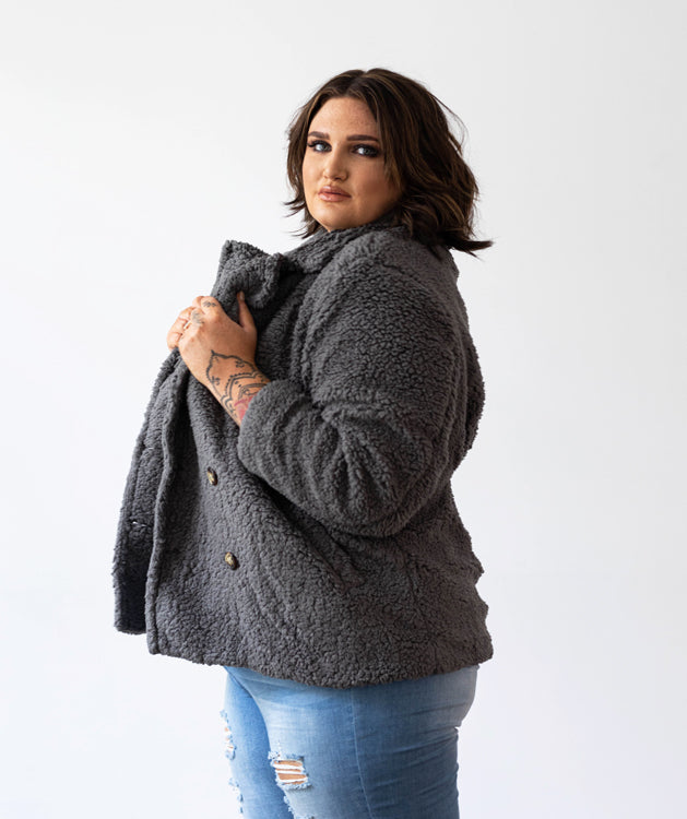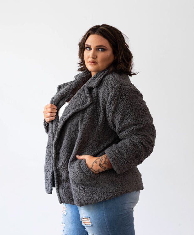 Lux Teddy Coat - Dark Grey - FINAL SALE