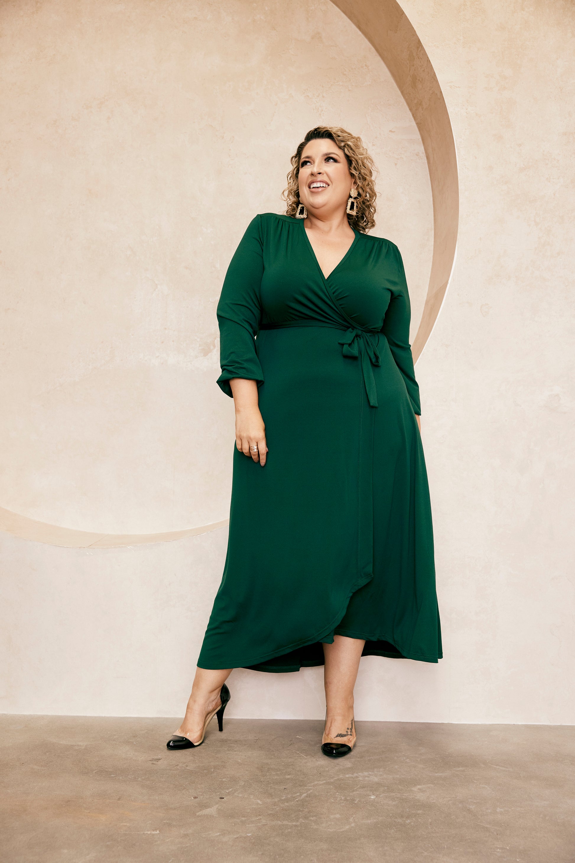 Jo, is normally a size 18 and is wearing the size 18 wrap dress.